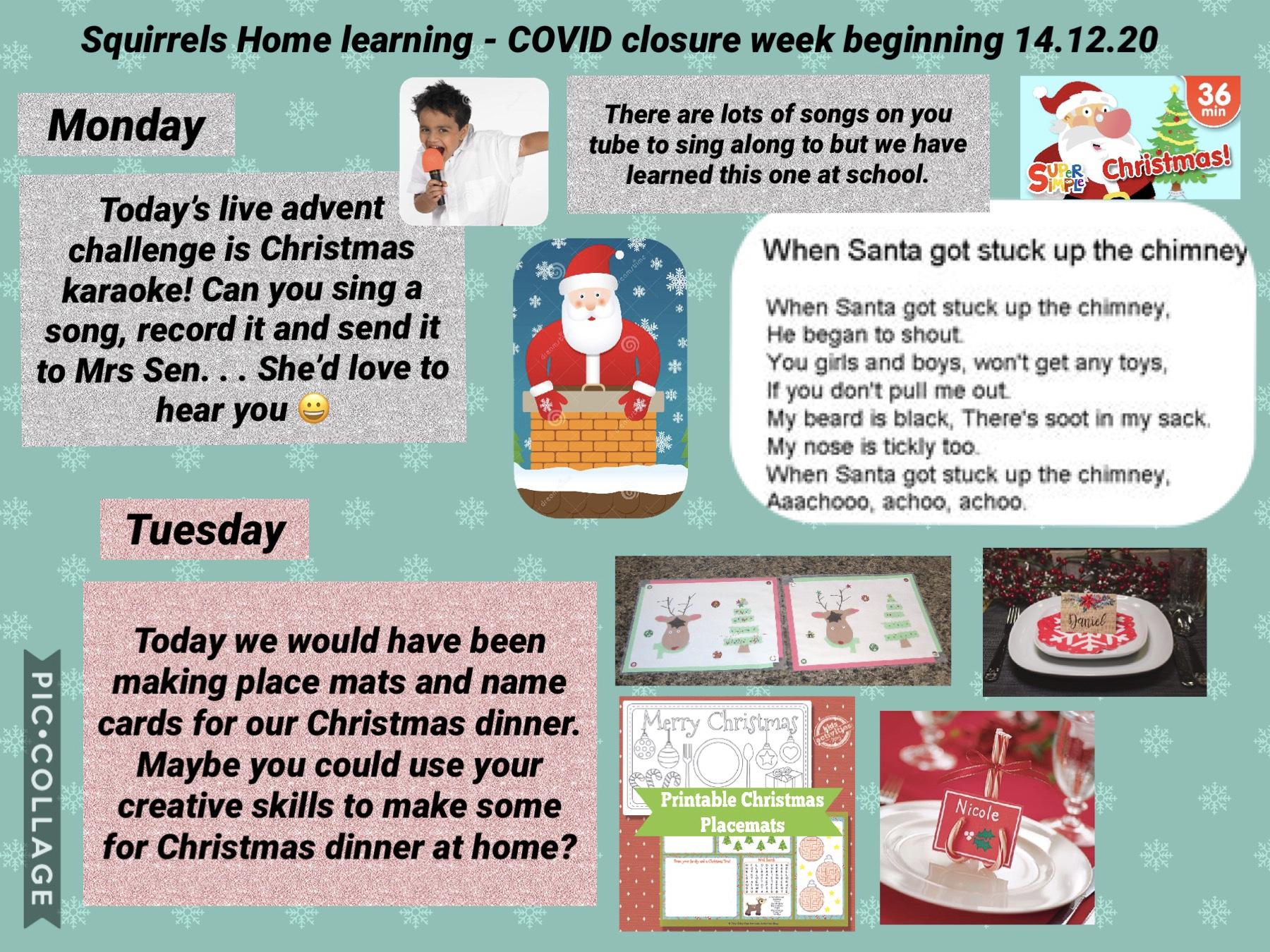 Squirrels home learning - week beginning 14.12.20