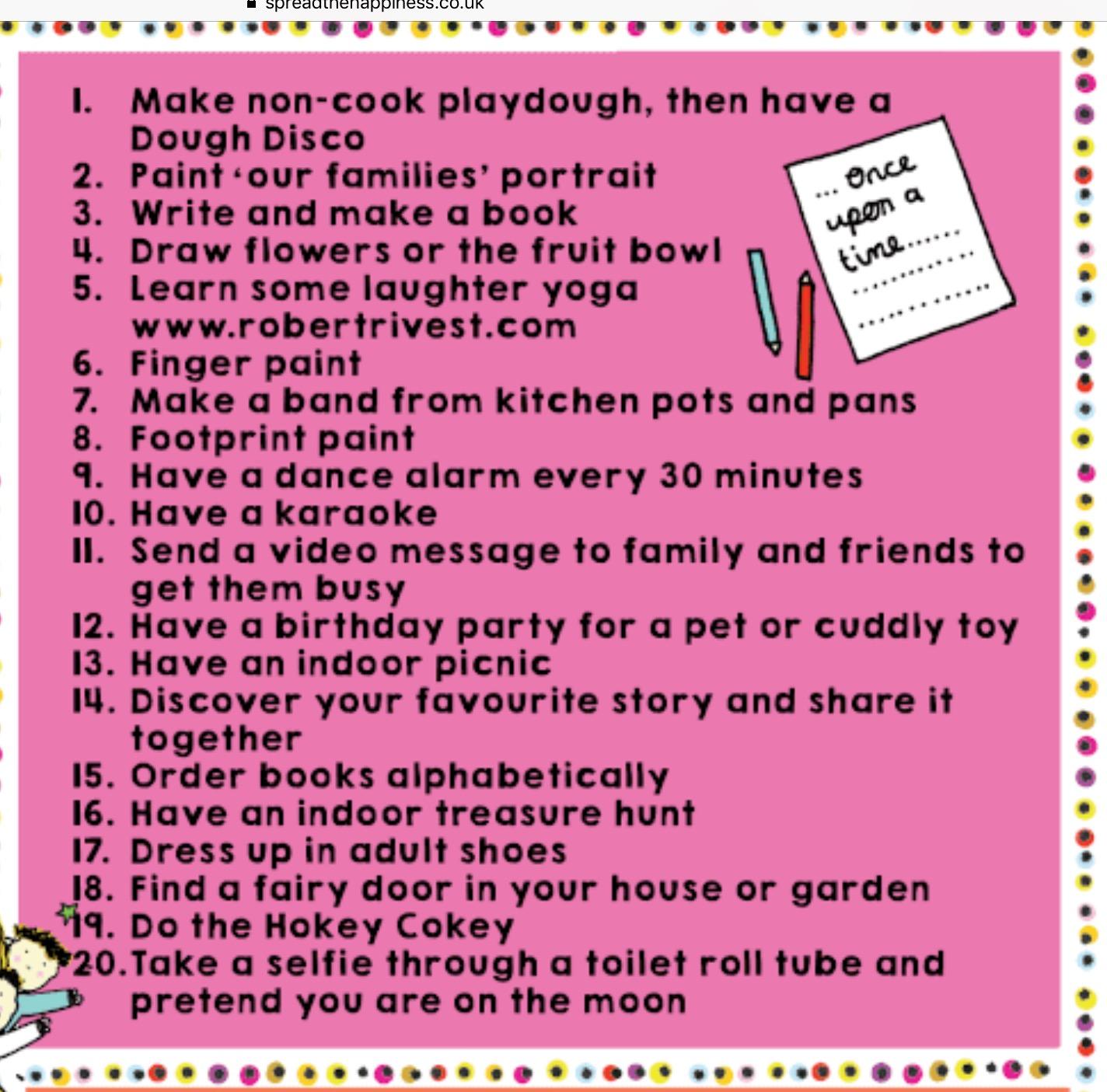 https://www.gosh.org/power-of-play-hub Great Ormond Street Hospital have shared lots of ideas that they use with children in their care as part of their play therapy program. They also have links to resources that help to explain coronavirus to young children.