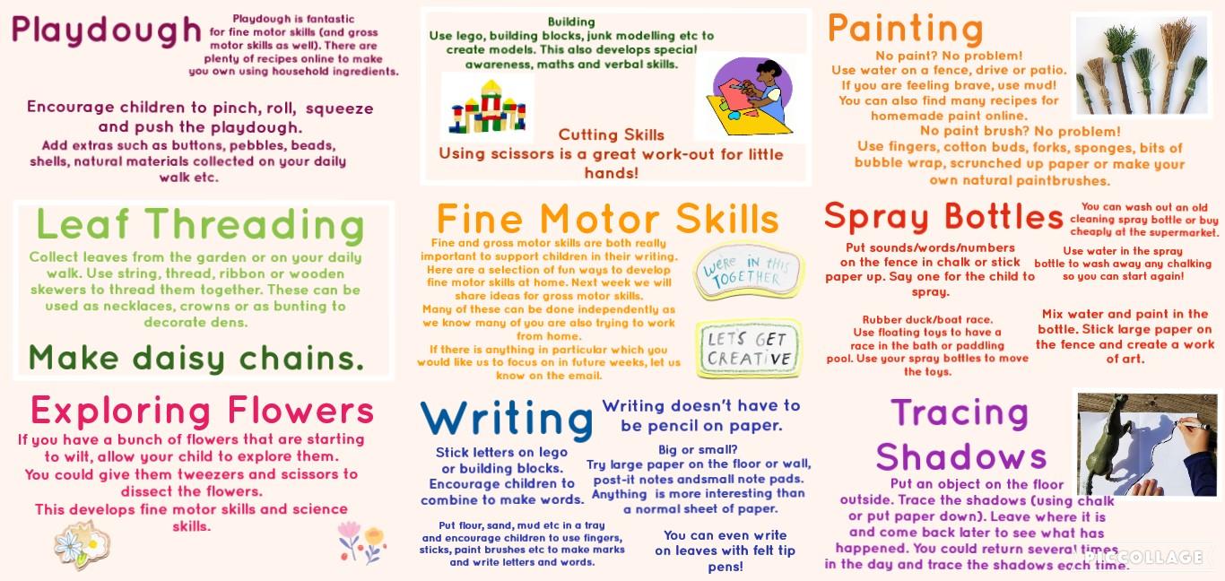 Whilst nursery is closed for all nursery groups, we will be posting daily activities here on the homework page. Please try to do as many of them as possible and email your work to us x