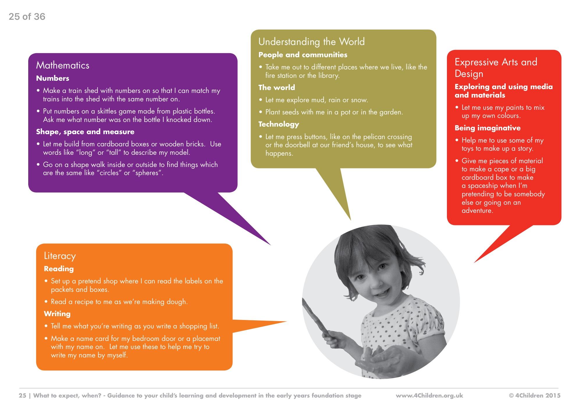 Children of this age learn best through practical, play based activities. If a child is engaged and focused in their play they are probably learning new things without them, or us adults even realising it!