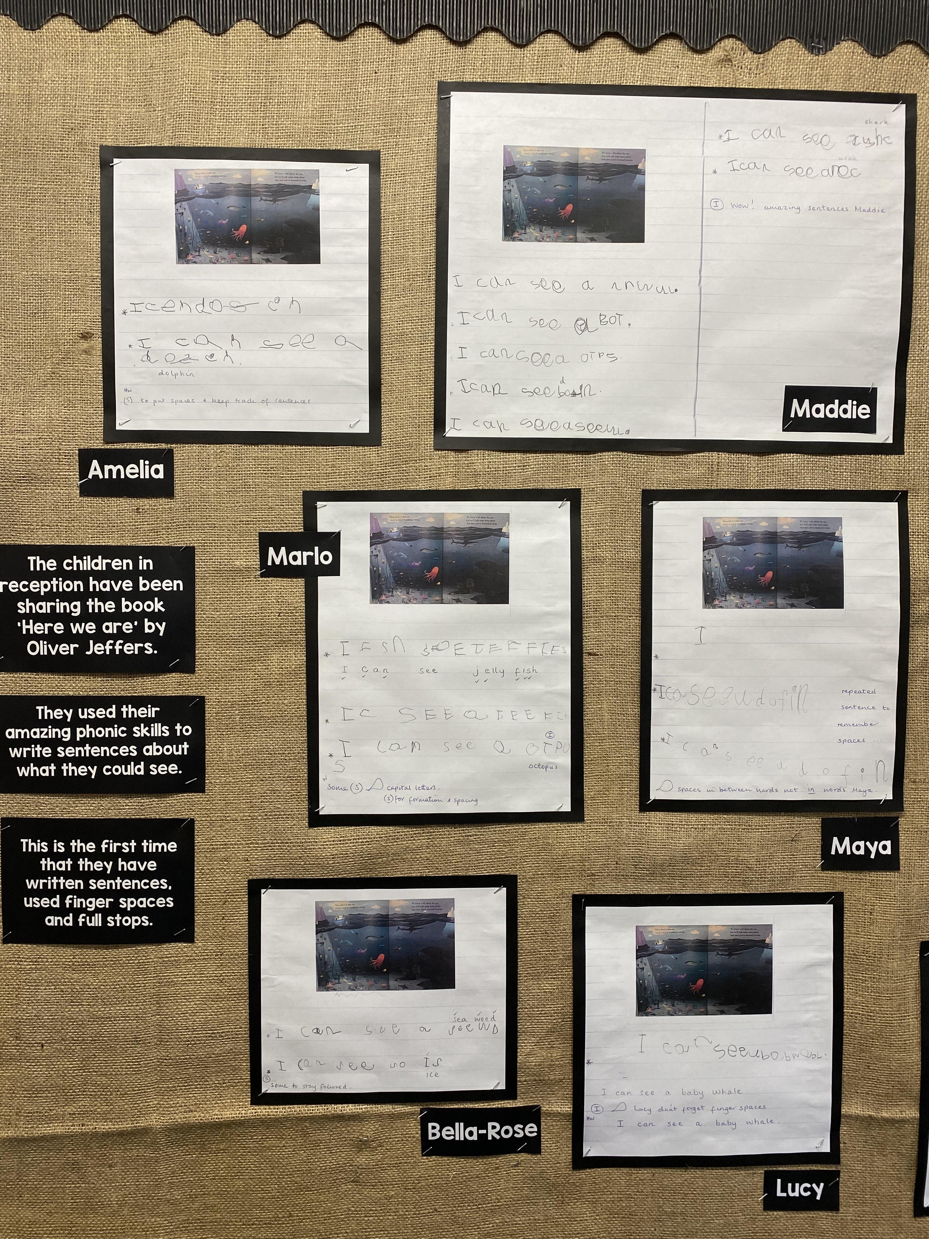 'Here we are' by Oliver Jeffers - Look at our amazing writing