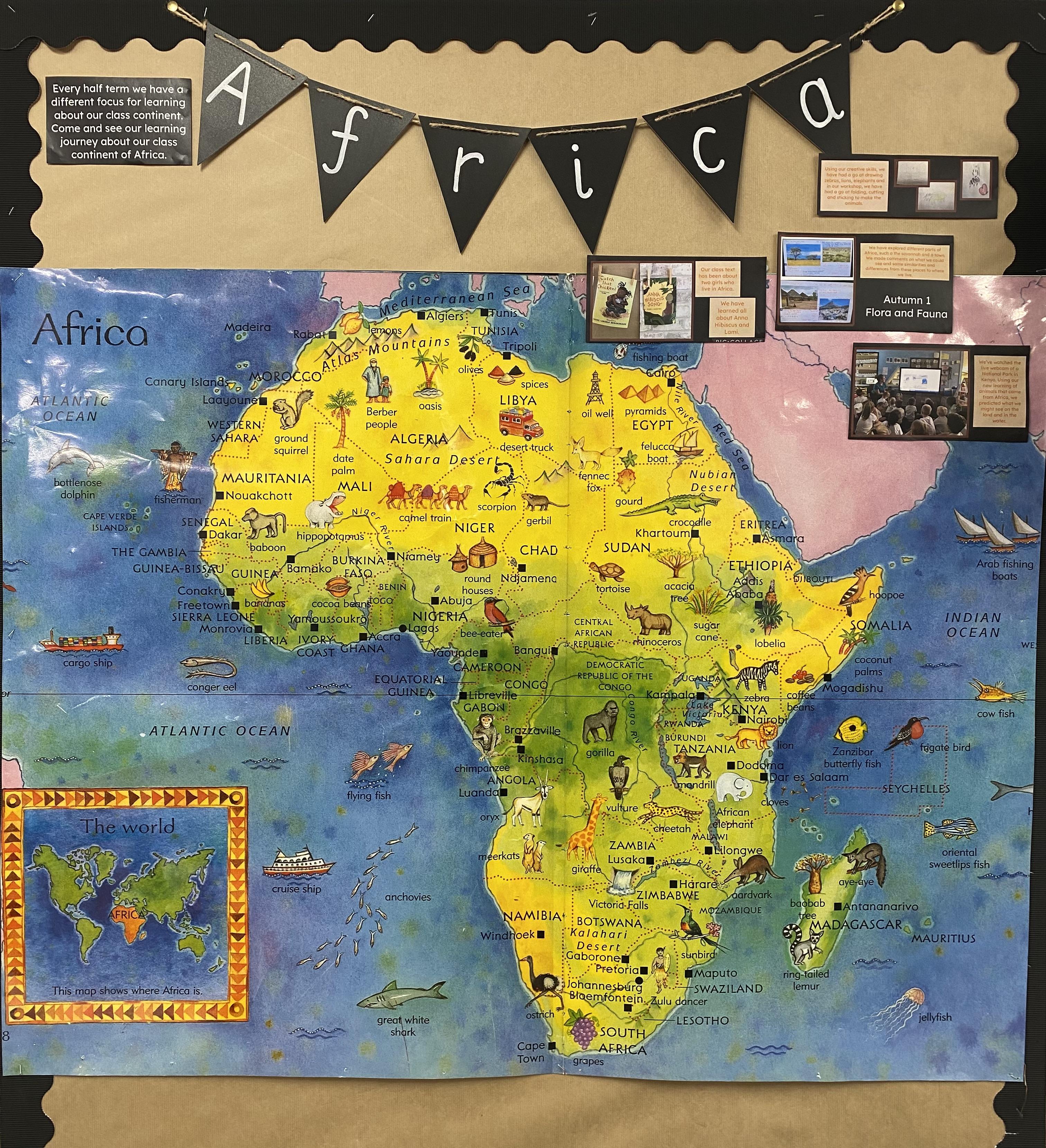 We have been reading the story, 'My granny went to market'. Granny visited lots of different places, one of them was Africa. We have been looking at non fiction books to learn more about Africa, our class continent.