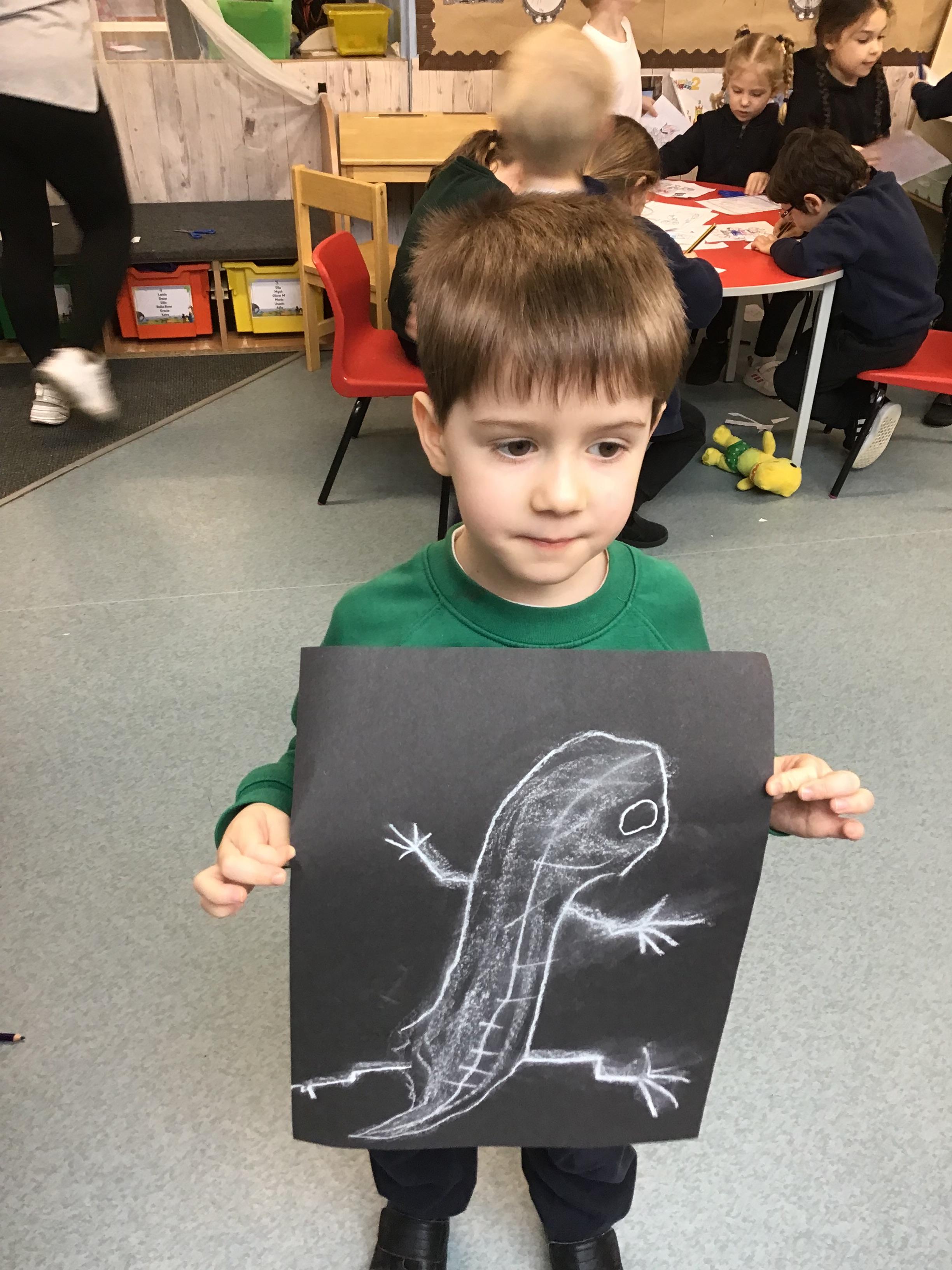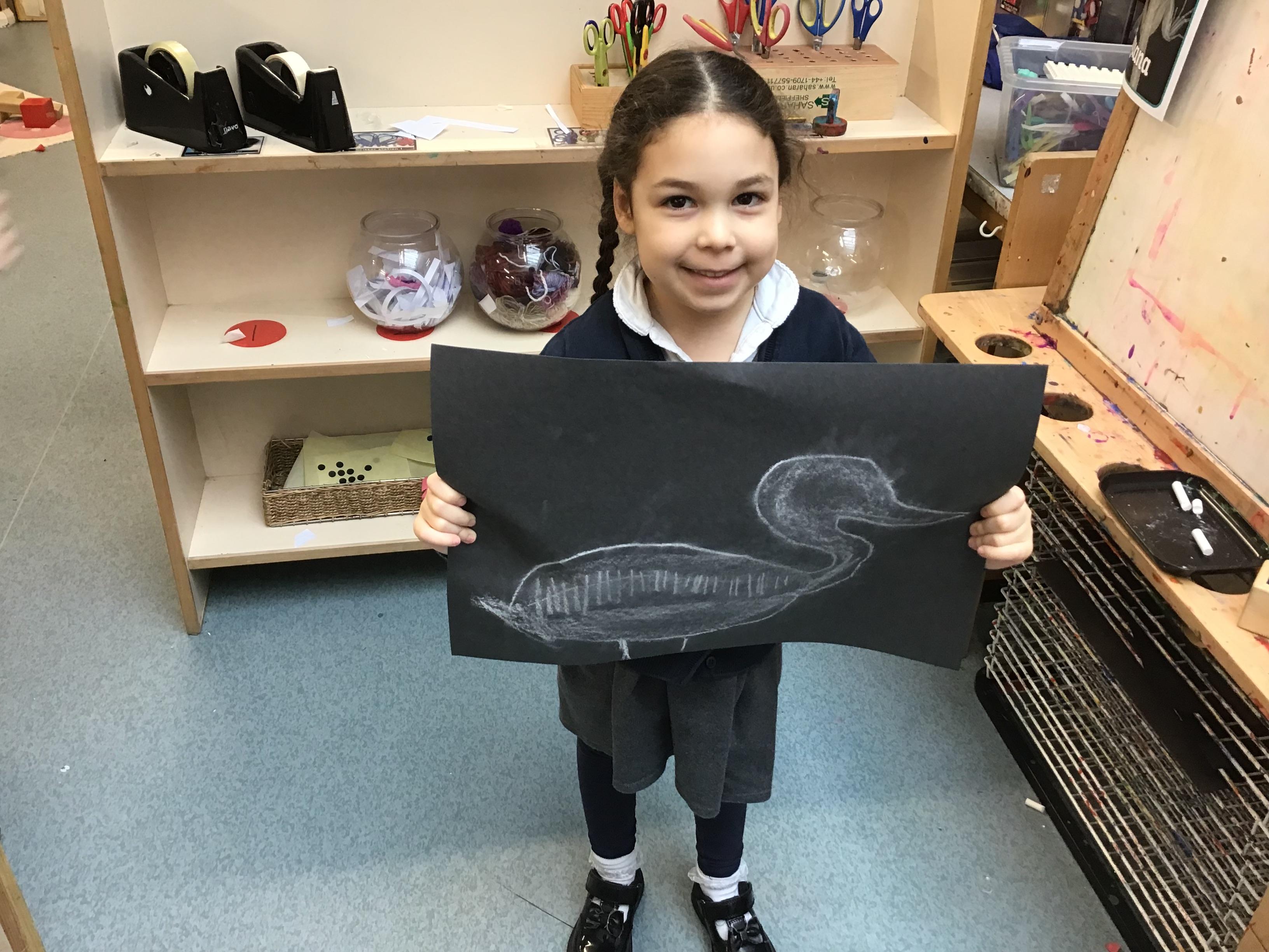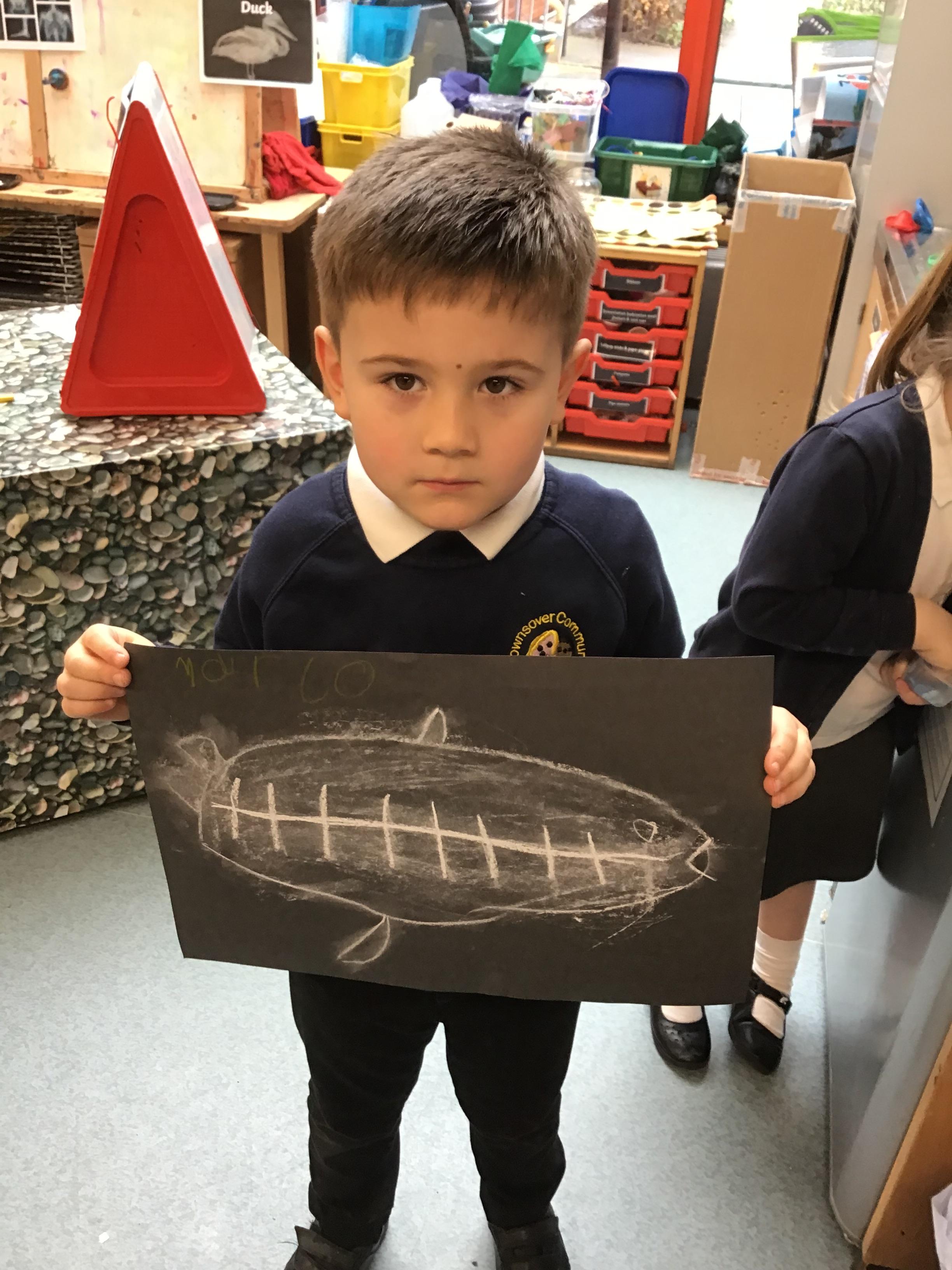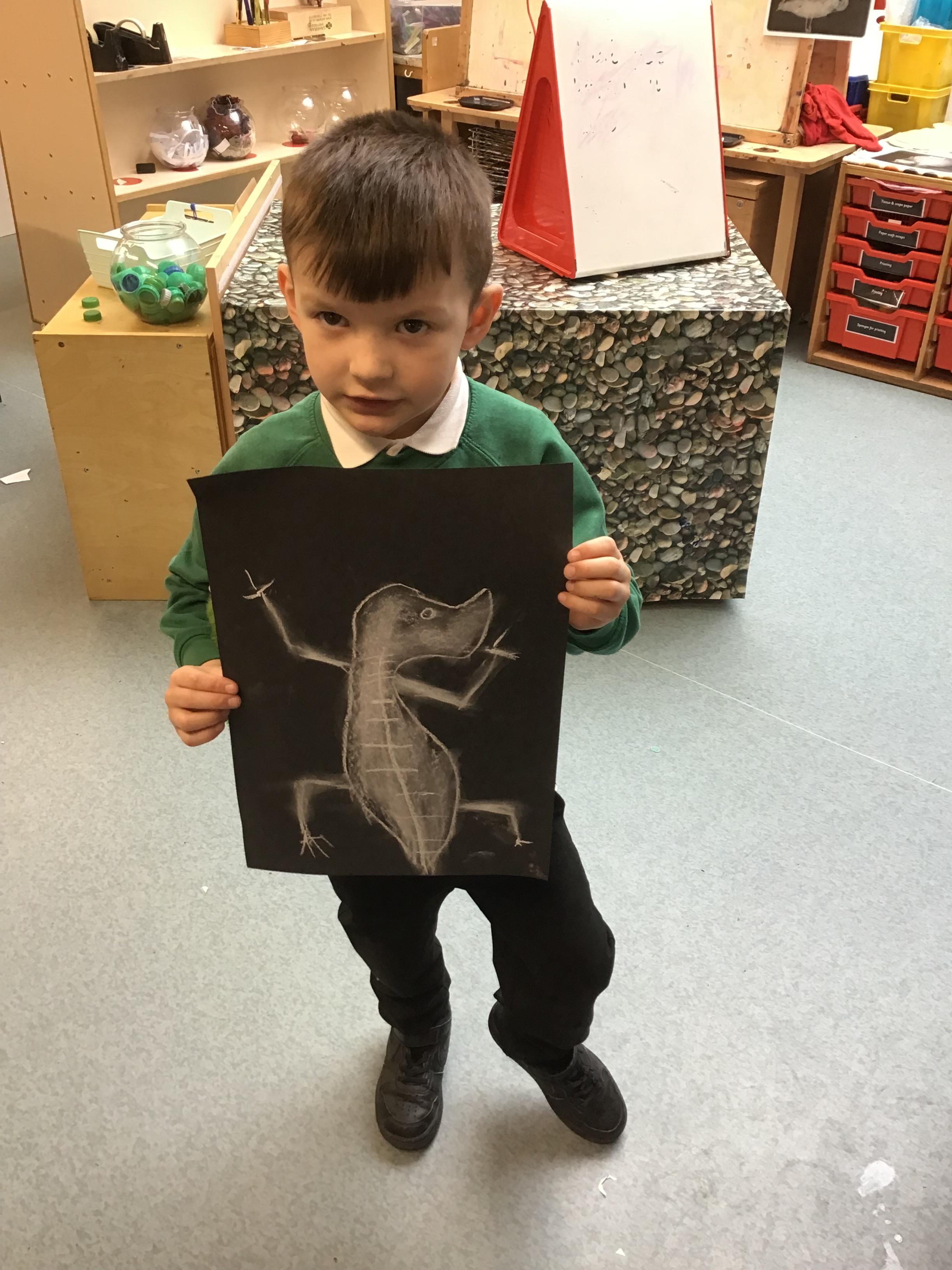 We have been learning about different jobs and looked at books about visiting the doctor or going to hospital. Look at our amazing X ray drawings using chalk on black paper